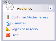 Para confirmar o anular las tareas a la espera debemos clicar en el botón Confirmar/Anular Tareas, lo cual nos abrirá una ventana con todas las tareas pendientes por gestionar. En dicha ventana podremos indicar si las tareas deben confirmarse o deben anularse. Una vez indicado lo que deben realizar las tareas, seleccionamos las taeras